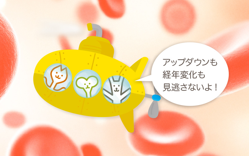 血液検査には、全身をふるいにかけて健康状態を調べたり病気の診断に役立てたりする以外に、「治療効果を判定する」という目的もあります。投与している薬の効果がきちんと出ているかどうか、慢性疾患の症状をコントロールできているかどうか等を数値から読み取り、別の薬や治療法の検討を含め、より良い健康管理支援ができるよう役立てます。