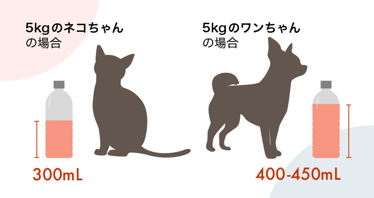 犬と猫では同じ体重であっても血液量が異なります。体内を循環している血液の量は、犬が体重の8〜9%、猫が約6%とされています。1/3を出血すると生命に危険が及びます。