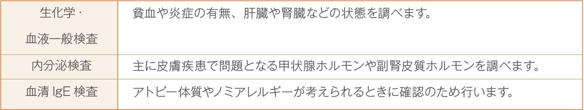 皮膚疾患の中には代謝や内分泌が関係することも多く、また治療に使用する薬が安全に使えるかどうか調べるためにも血液検査は必要になってきます。