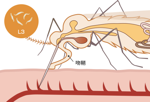 吸血とフィラリア感染のしくみ