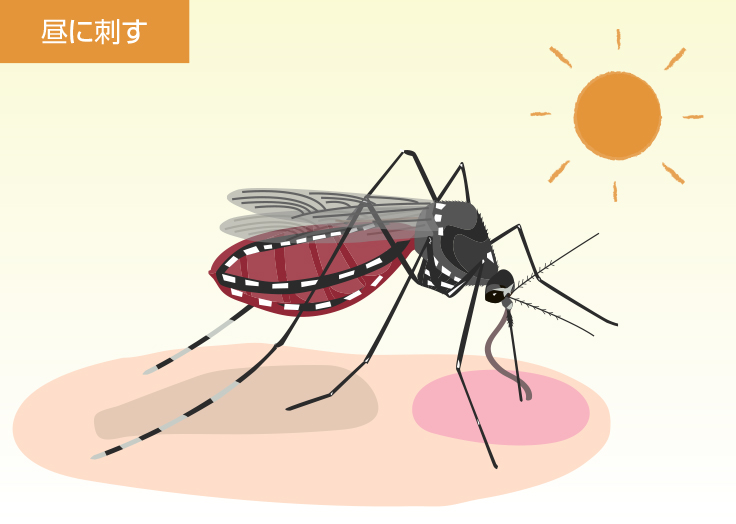 - 4〜10月が活動時期、晩秋に羽化した蚊(メス)は休眠状態で越冬