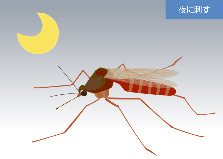 - 4〜10月が活動時期、晩秋に羽化した蚊(メス)は休眠状態で越冬