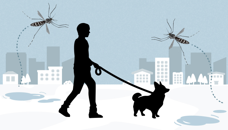 犬は地面に近い位置にいて、体温が高く、体臭も強いため、ヒトよりも狙われやすいといわれています。刺されても痒みを感じづらく、追い払うこともあまりしないので、飼い主さんも気がつかないうちに実は刺されているということがあります。