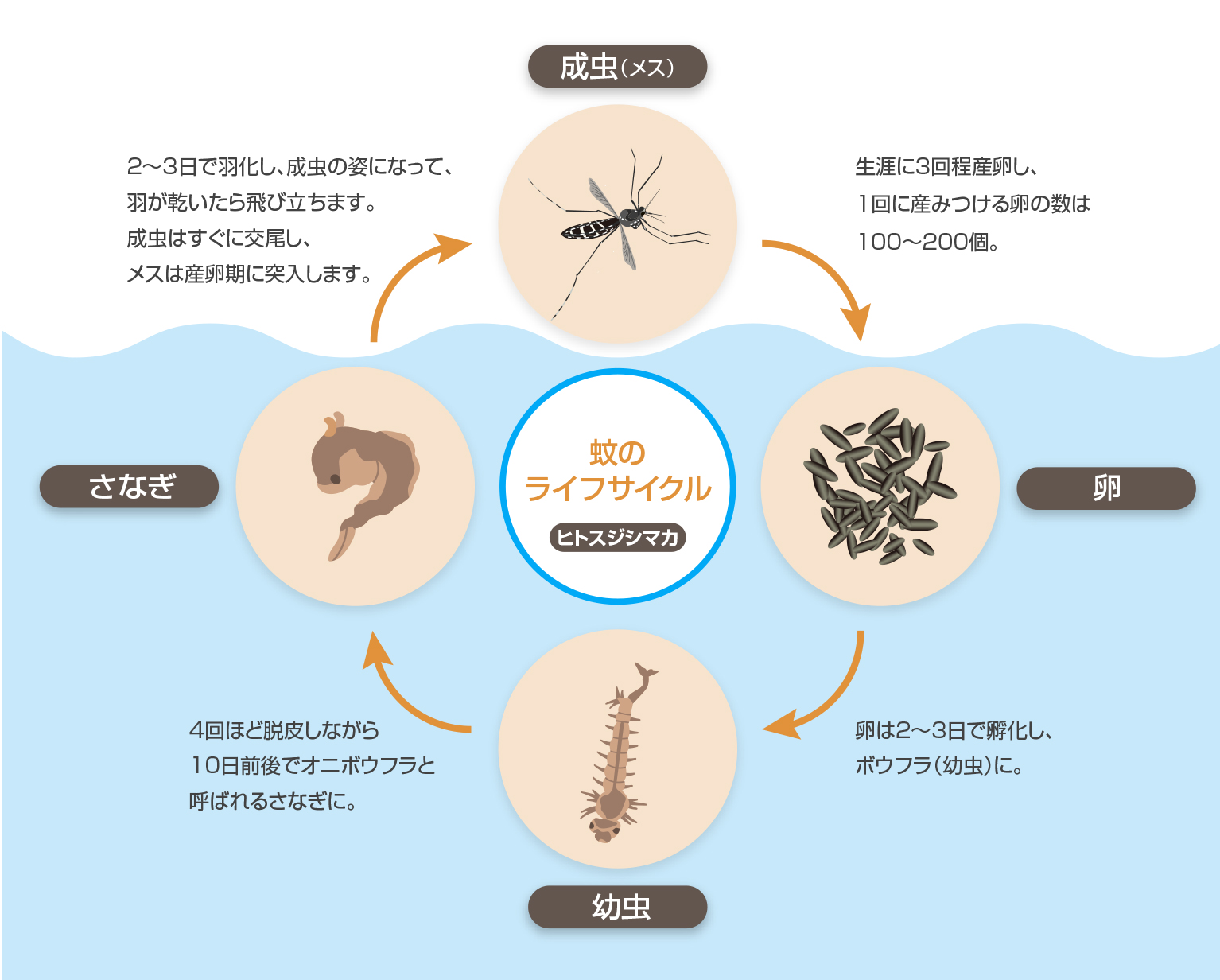 それらはわずか2週間程で成虫になり、交尾・吸血・産卵で増え続けます。