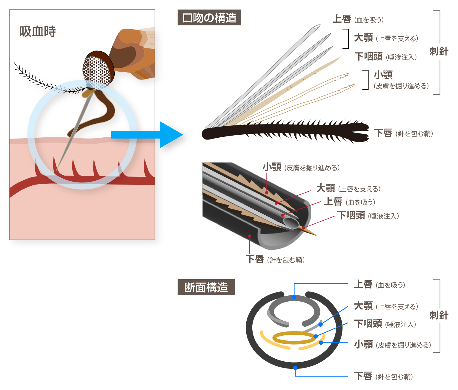 - 血を吸う際、ストローを被い、安定させる役目をする針です。