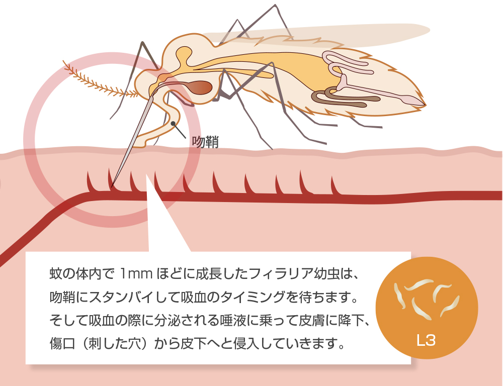 吸血とフィラリア感染のしくみ